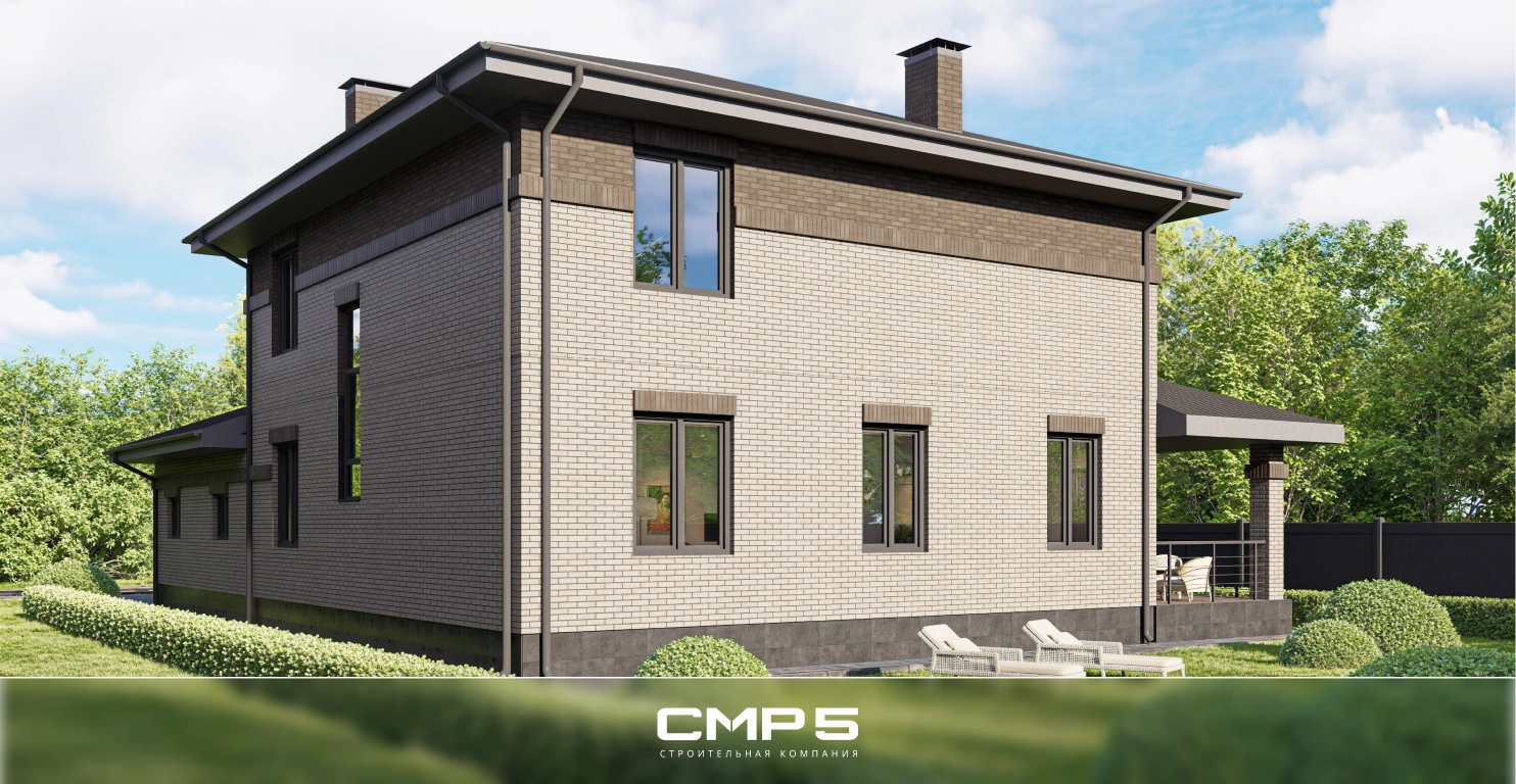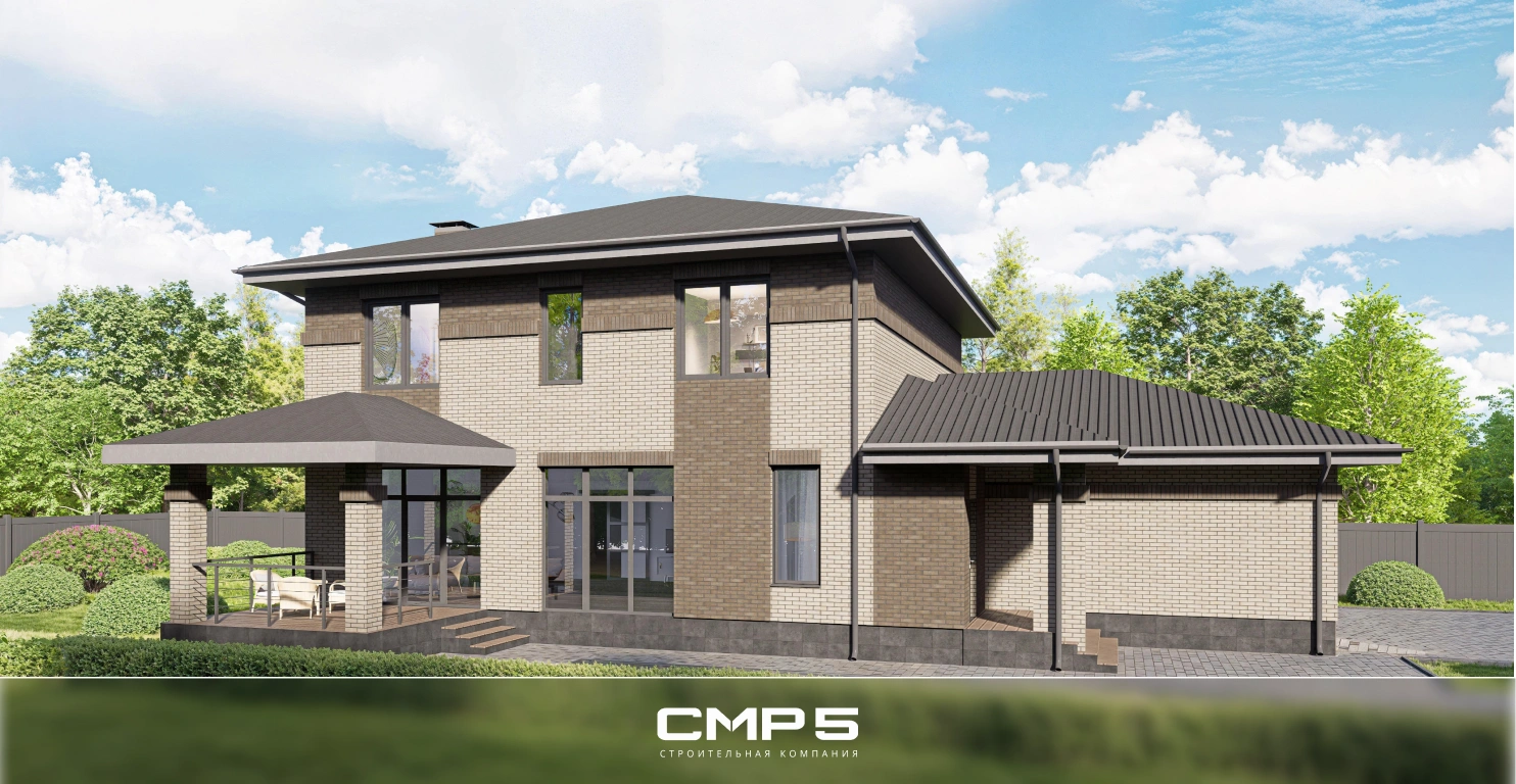 Представляем вашему вниманию двухэтажный дом общей площадью 240 м², из которых 50 м² занимает пристроенный гараж на два автомобиля. Таким образом, жилая площадь дома составляет 190 м². Архитектурное решение выполнено в классическом стиле: фасад из керамического кирпича, спокойный и сдержанный, дополнен аккуратными рустами, кирпичными колоннами и декоративной вертикальной кладкой. Дом выглядит гармонично и основательно, без излишней вычурности.